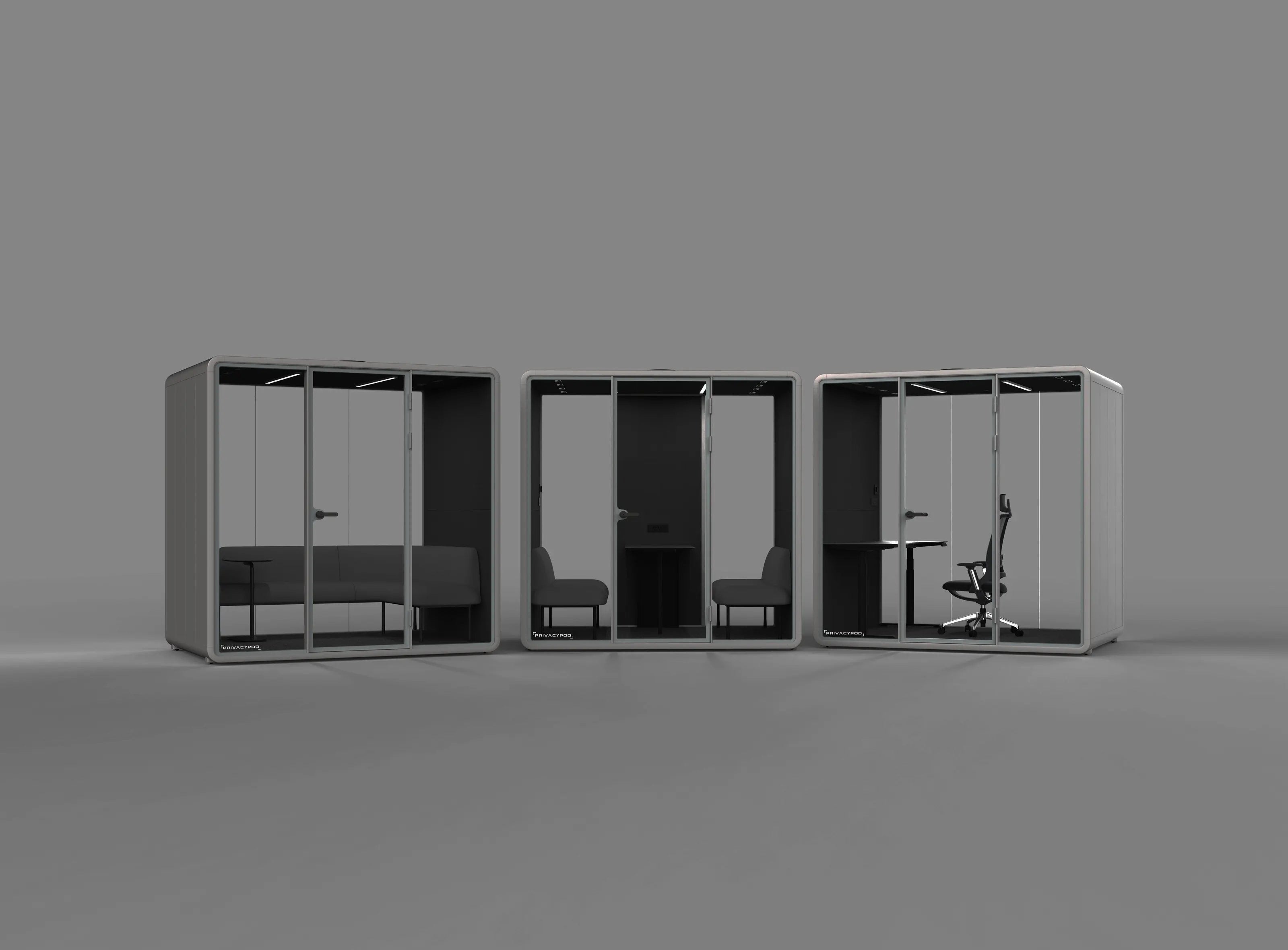 It delivers the same plug-and-play privacy as our smaller pods but on a grand scale, turning unused floor space into a centerpiece that sparks big energy and bigger breakthroughs.