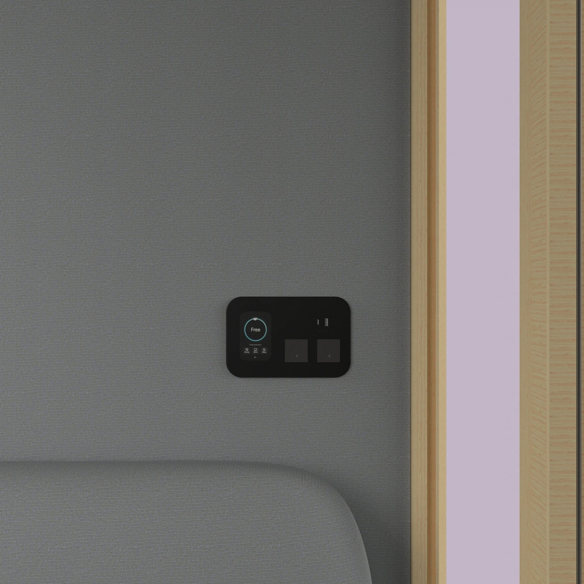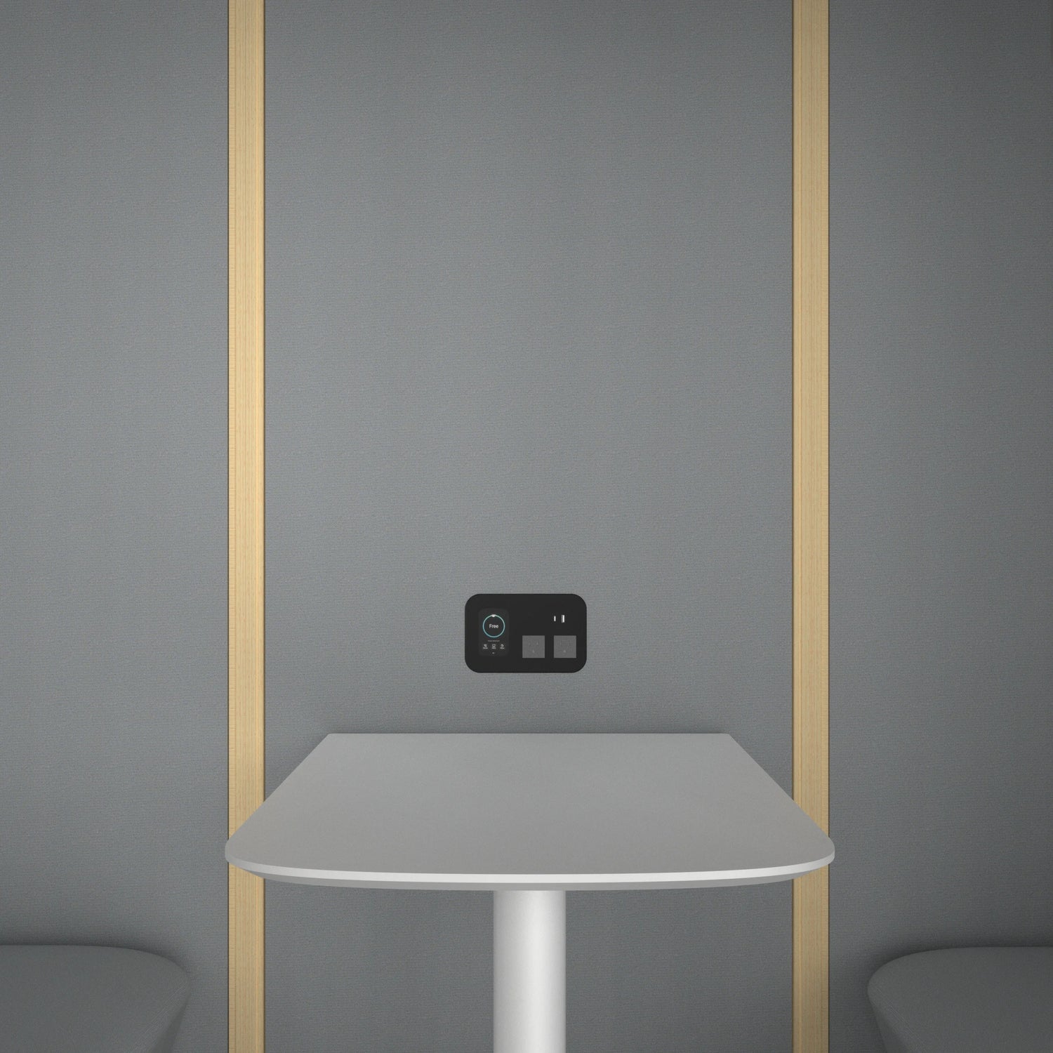 One interface for light, ventilation, and session timing—plus visible occupancy status. Built-in US power and USB keep laptops and tablets meeting-ready.