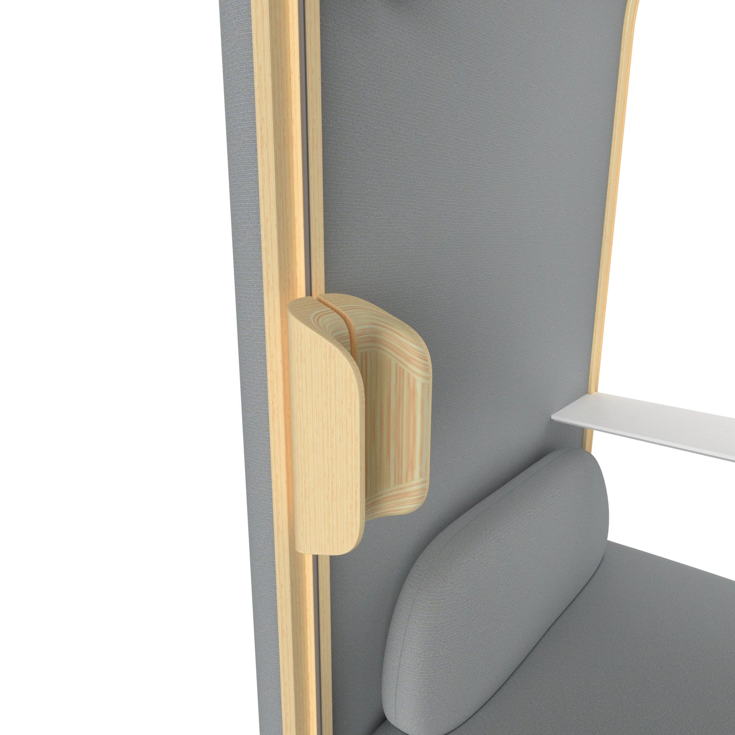 Curved Birch + Steel Frame, PET Acoustic Felt, HPL Birch Work Shelf
