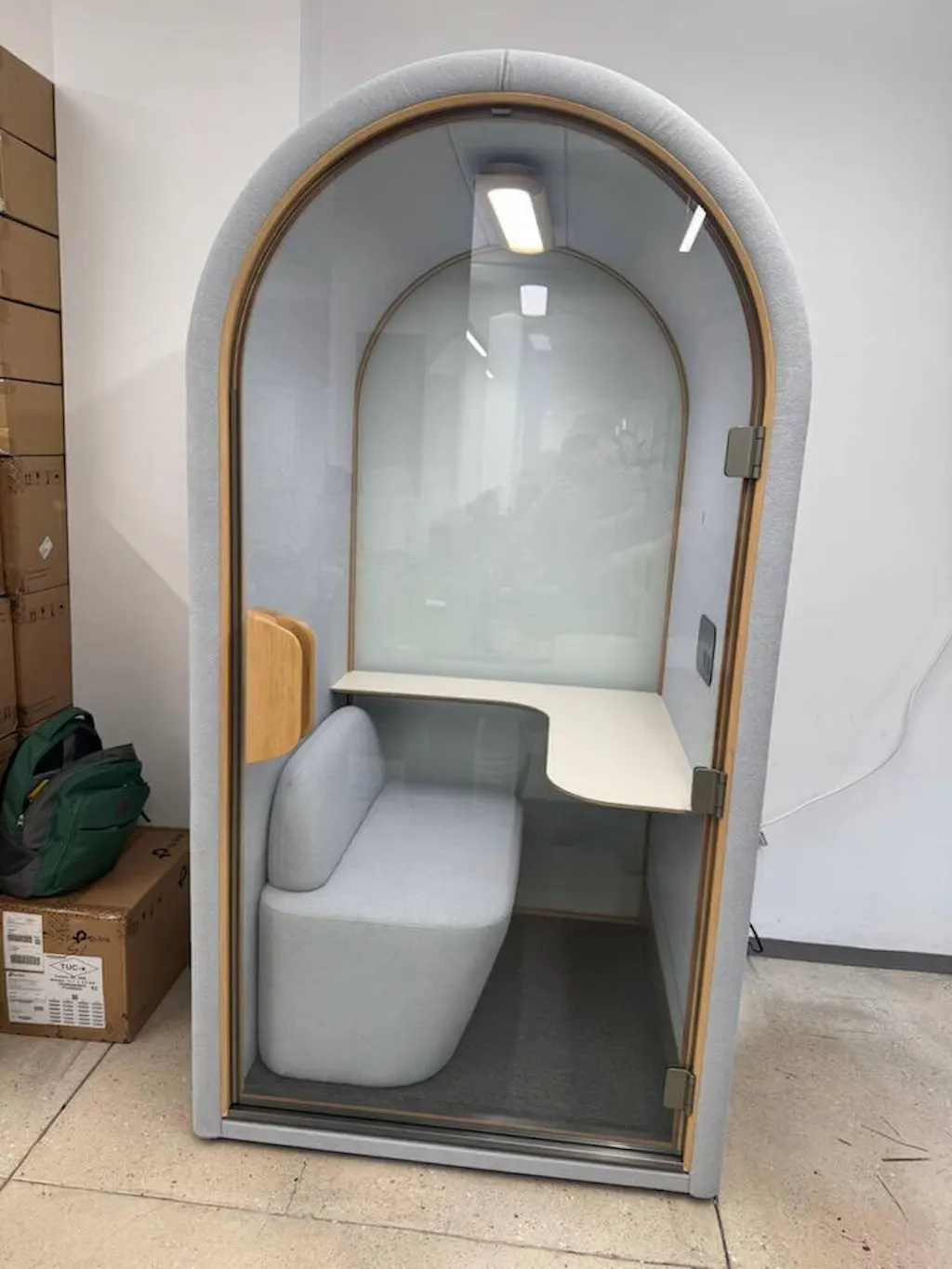 The Arc S turns 1.2 m² into a 30 dB, rounded-edge focus nook for calls, study, and heads-down work—complete with tunable light and airflow at your fingertips