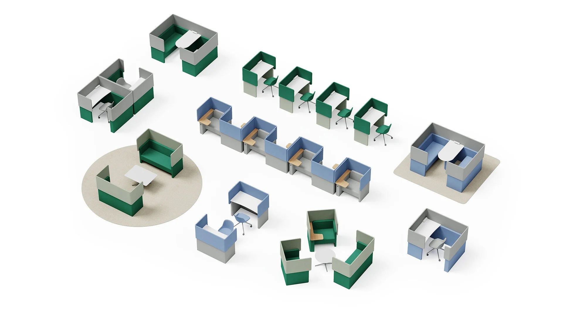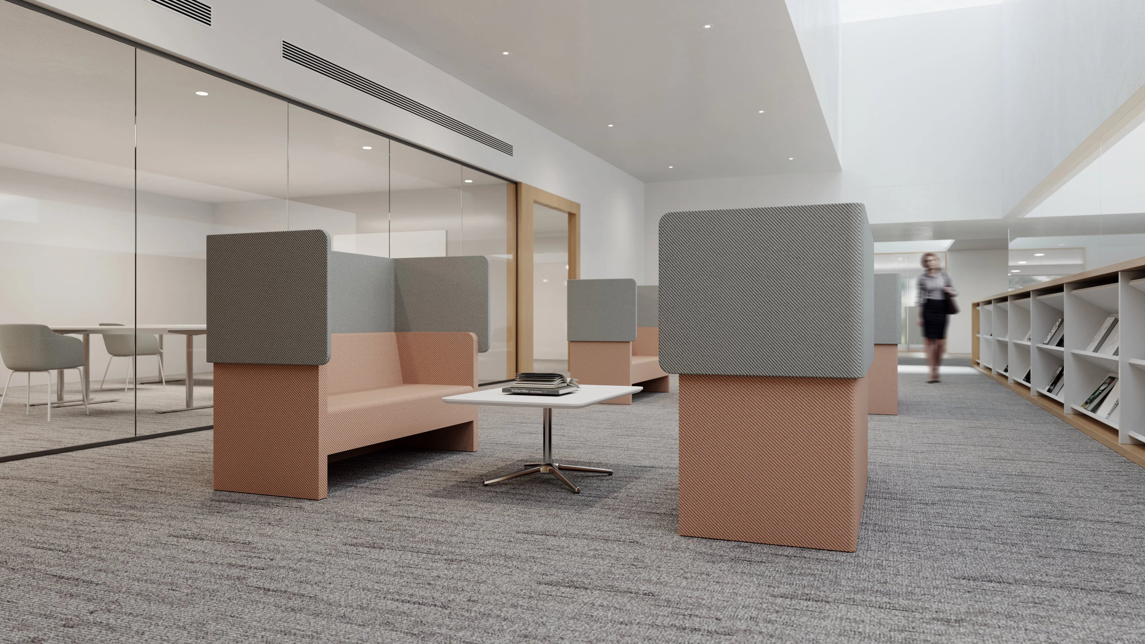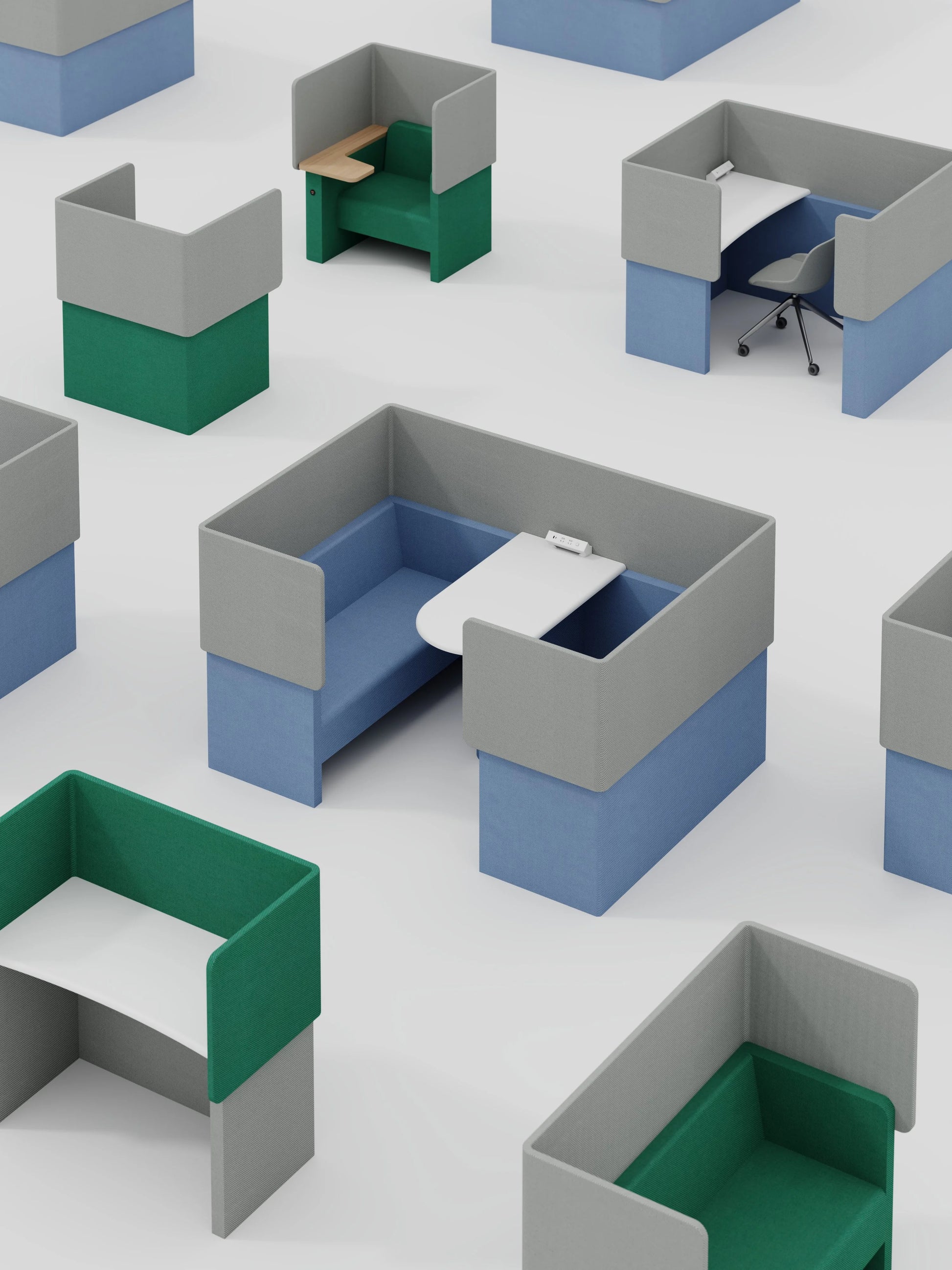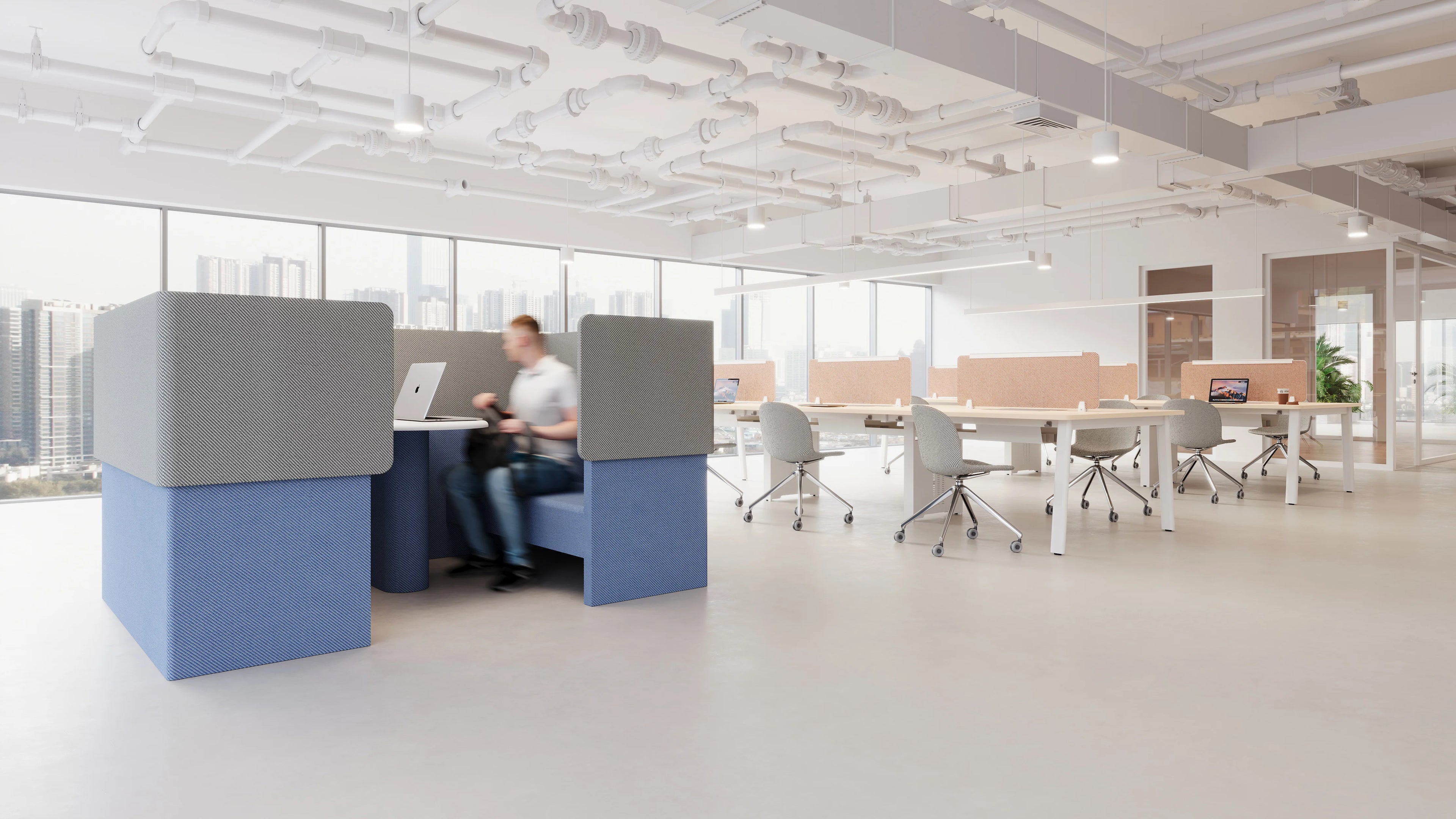 Upholstered, high-back walls absorb noise and improve speech intelligibility—ideal for interviews, pair programming, or quick stand-ups.