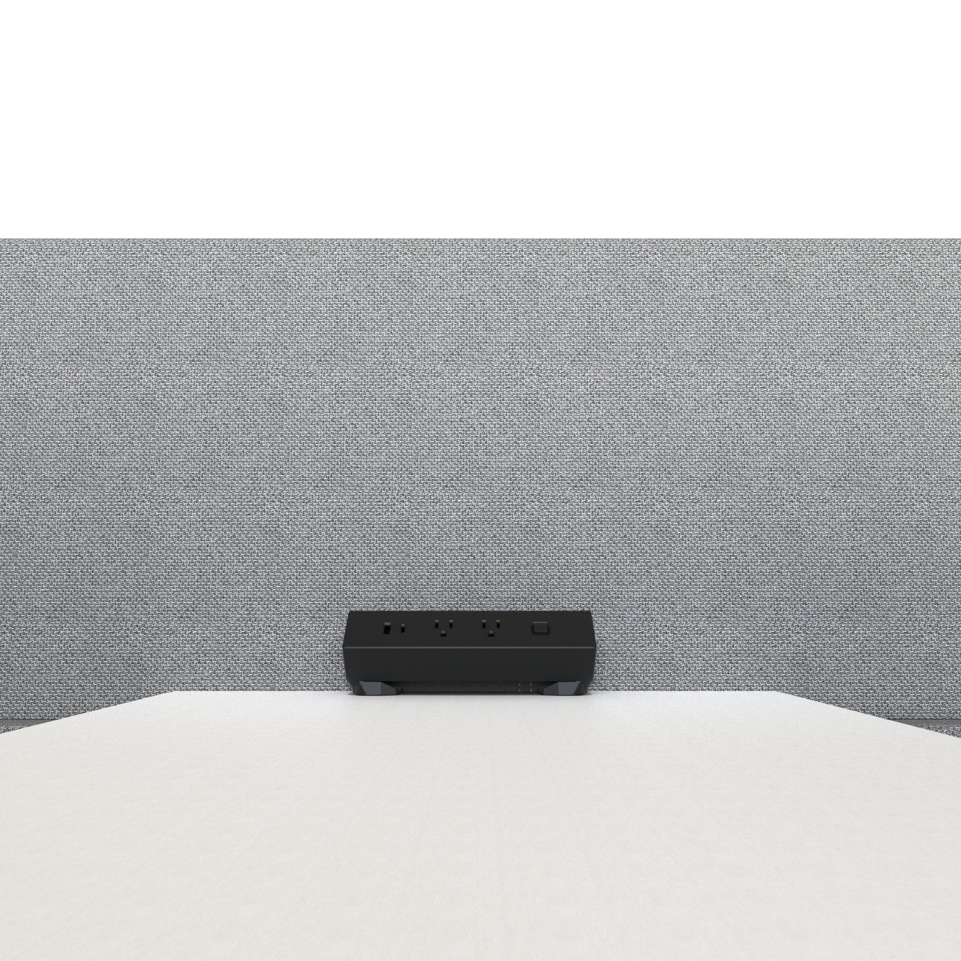 - Integrated power strip: 2× US AC outlets + 1× USB-A + 1× USB-C (25 W combined)