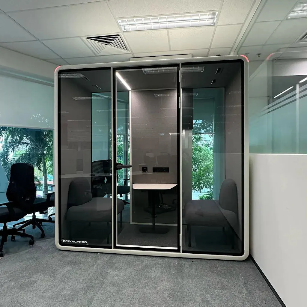 Pricing for 2-seat āmicro-meeting roomsā ranges from roughly $8,000 for import knock-offs to over $18,000 for boutique European glass cubes. At $10,995 freight-paid, the PrivacyPod SL lands firmly in the value-premium tier, yet the number you see is the number you payāno dealer commissions, no landlord build-out fees. Because we manufacture in an ISO-9001 facility and ship factory-direct, youāre buying a complete kit: dual-fan ventilation, motion-sensing LEDs, USB-C power, and a bench-and-table furniture set. Price a similar drywall roomāframing, glazing, permits, tradesāand youāll spend 40ā60 % more and still be stuck with an immovable fixture when your lease is up.