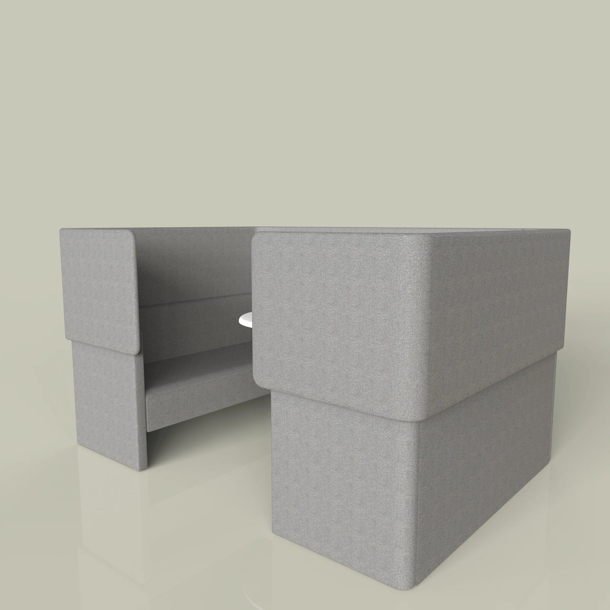 A four-person “house” booth with opposing benches and a central table—fully upholstered walls form an acoustic alcove for team huddles, study groups, and café-style meetings in ...