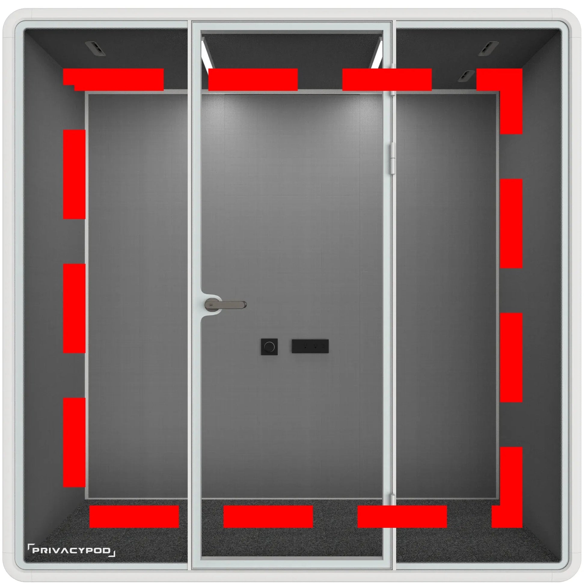 • Complete Coverage — replaces the entire back glass wall with acoustic fabric.