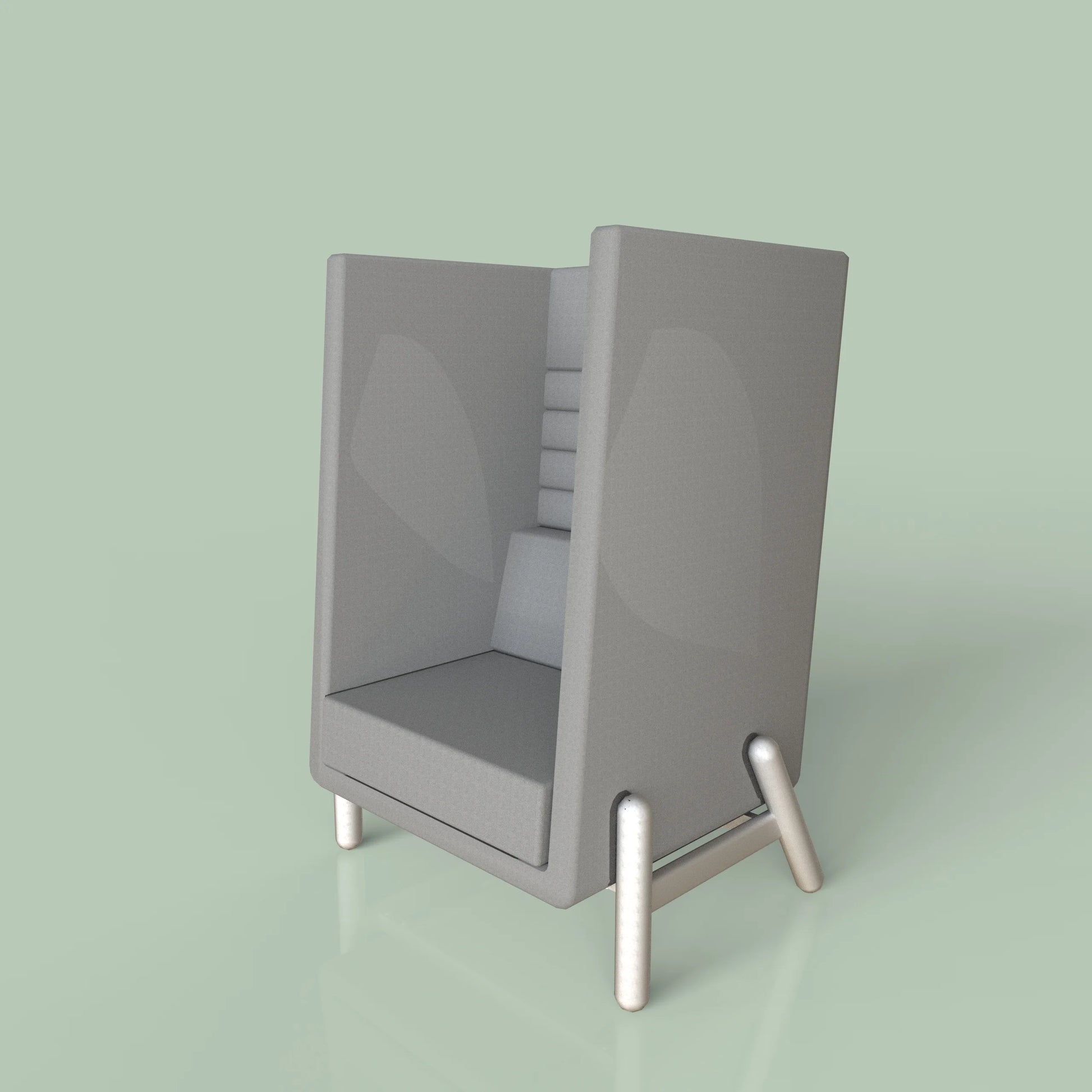 A high-back acoustic lounge chair that carves out personal focus space in open offices, libraries, and lounges. Tall, sound-absorbing panels and a deep seat create a quiet nook for heads-down work, calls, or reading—without building walls.