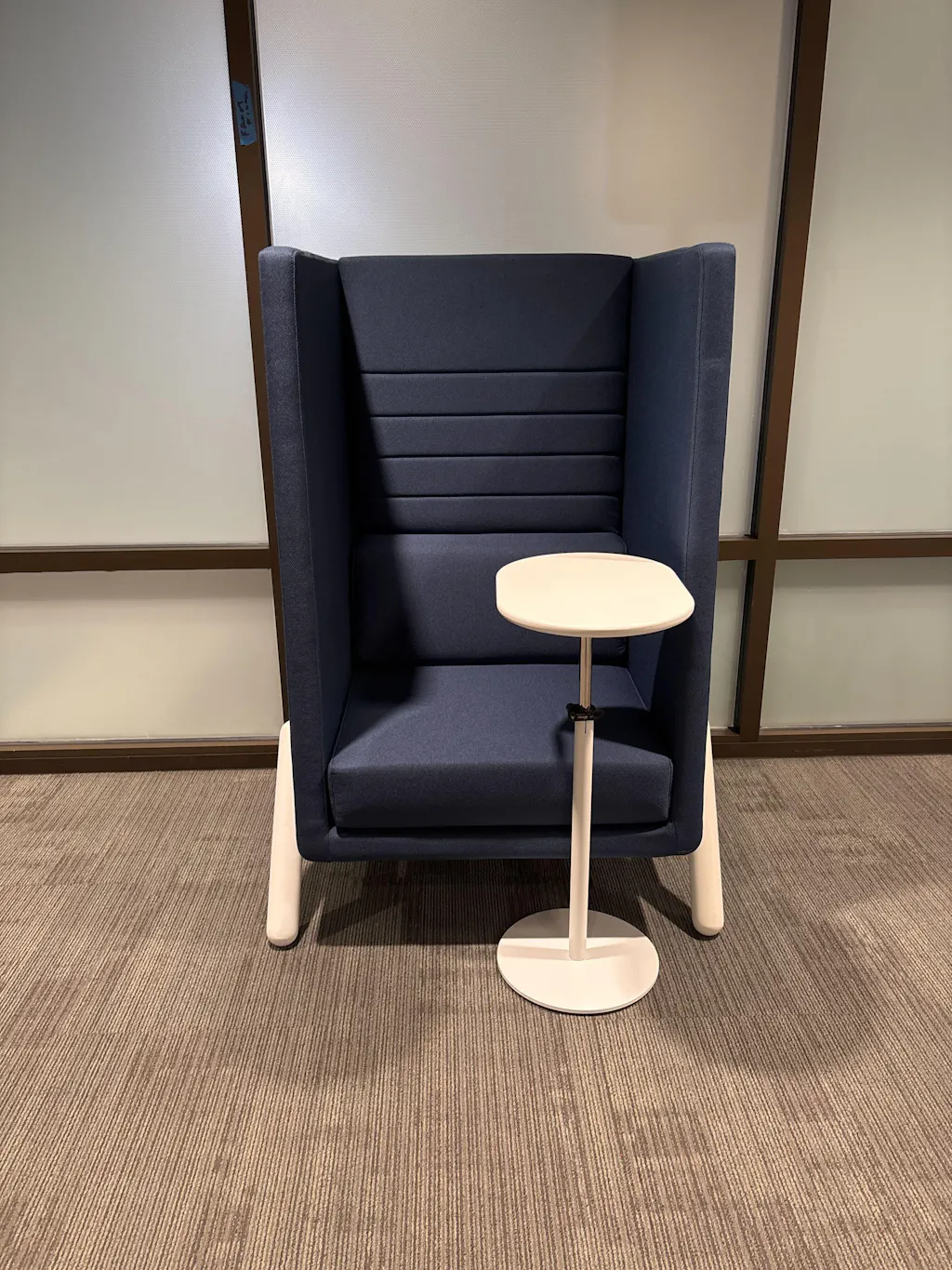 A high-back acoustic lounge chair that carves out personal focus space in open offices, libraries, and lounges. Tall, sound-absorbing panels and a deep seat create a quiet nook for heads-down work, calls, or reading—without building walls.