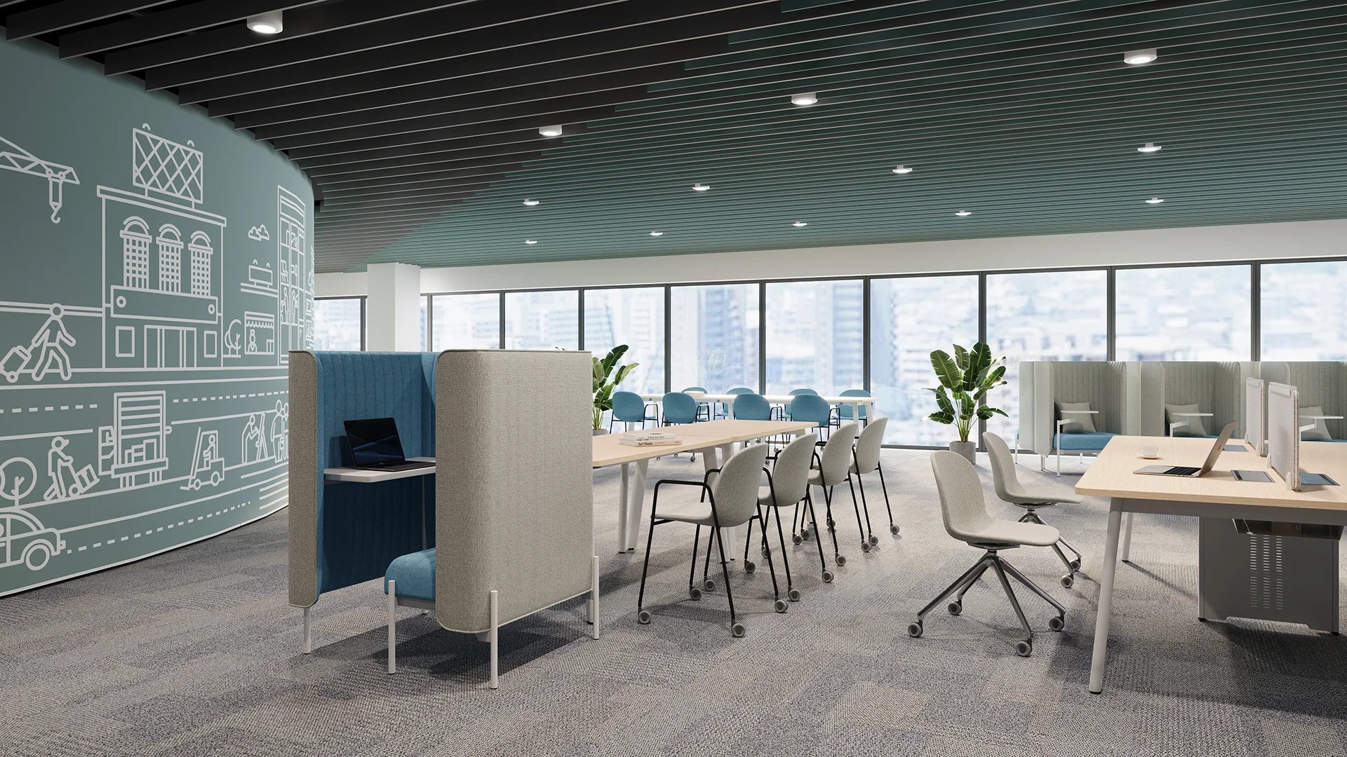 Tall, quilted privacy panels dampen reverb and block sightlines so calls and deep work stay distraction-free in busy spaces