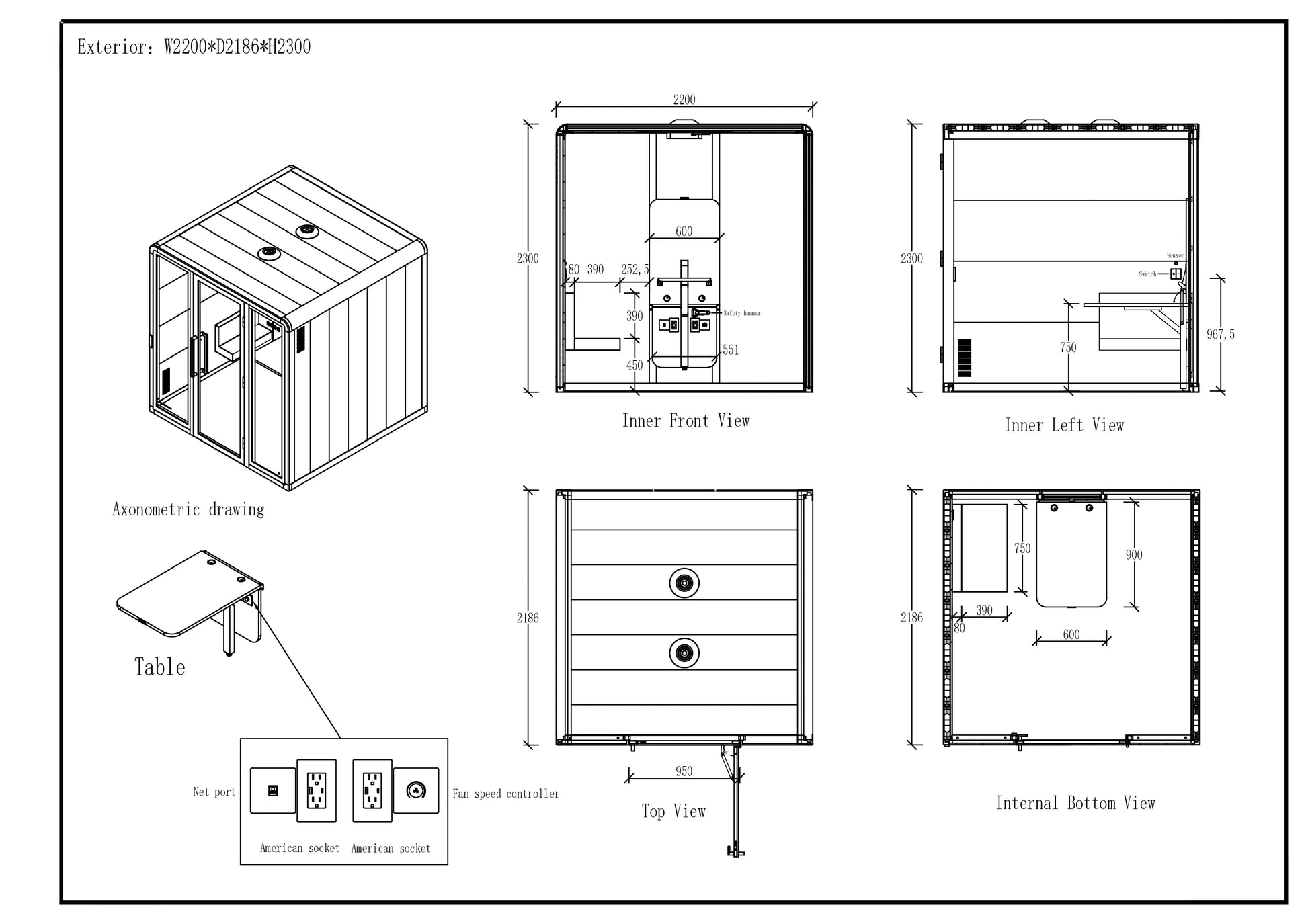 The ultra-thin base plate and frameless design make entry seamless for wheelchair users, while the non-touch sensor switch and automatic door opener/closer allow easy, hands-free operation. Equipped with foldable tables and chairs, this pod maximizes space and convenience, adapting effortlessly to various needs.